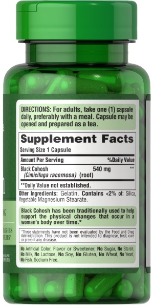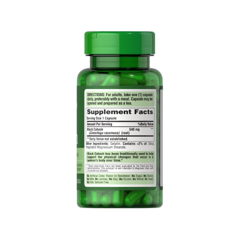 Black Cohosh (Чорний Кохош) - це рослина, яку широко застосовують для підтримки жіночого здоров'я, особливо в період менопаузи. Її унікальні властивості допомогли їй посісти важливе місце у фітотерапії завдяки здатності зменшувати симптоми клімаксу, як-от припливи, нічні потовиділення і різкі зміни настрою. Продукт Black Cohosh від Puritan's Pride з дозуванням 540 мг накапсульований, що робить його зручним для щоденного застосування.
