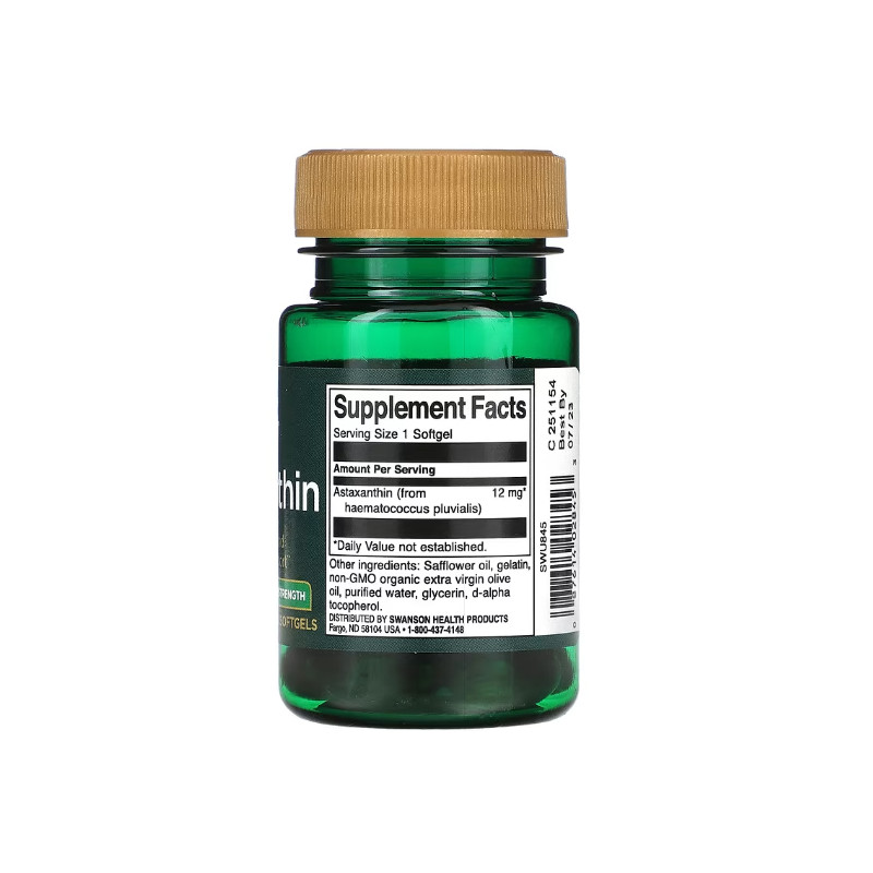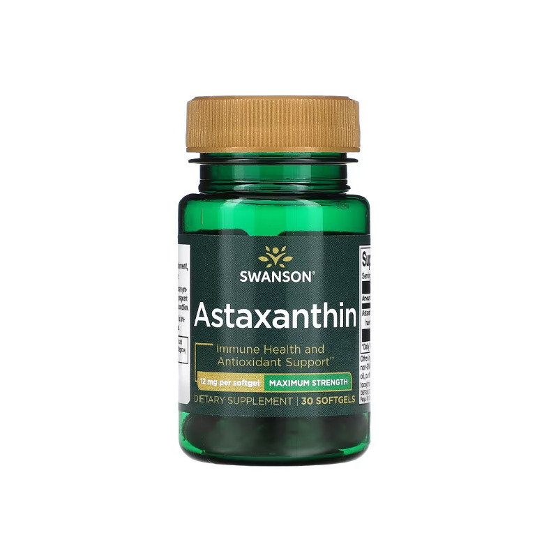 Астаксантин – це потужний антиоксидант, є одним із найсильніших природних антиоксидантів, що допомагає захистити клітини організму від оксидативного стресу та шкідливого впливу вільних радикалів. Swanson пропонує високоякісний астаксантин у формі м'яких капсул, що легко засвоюються, з максимальною концентрацією 12 мг на капсулу.