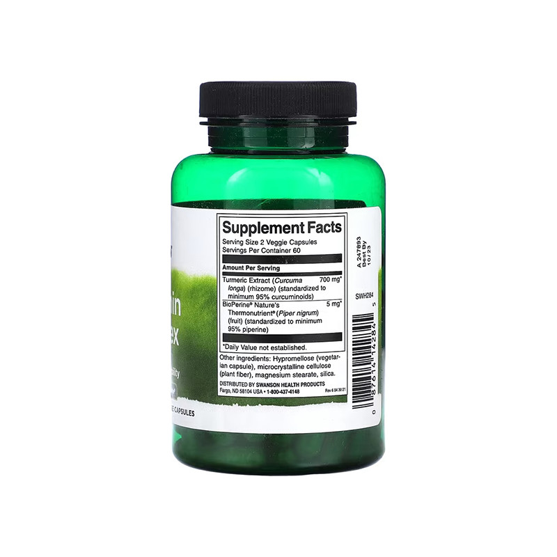 Swanson Curcumin Complex – це високоякісний природний продукт, який допоможе підтримати ваше здоров'я на багатьох рівнях. Завдяки своїм антиоксидантним та протизапальним властивостям, цей комплекс сприяє підтримці здоров'я суглобів, серцево-судинної системи, шкіри та мозку. Веганська формула без штучних інгредієнтів робить цей продукт ідеальним вибором для тих, хто дбає про своє здоров'я та дотримується принципів природної медицини.