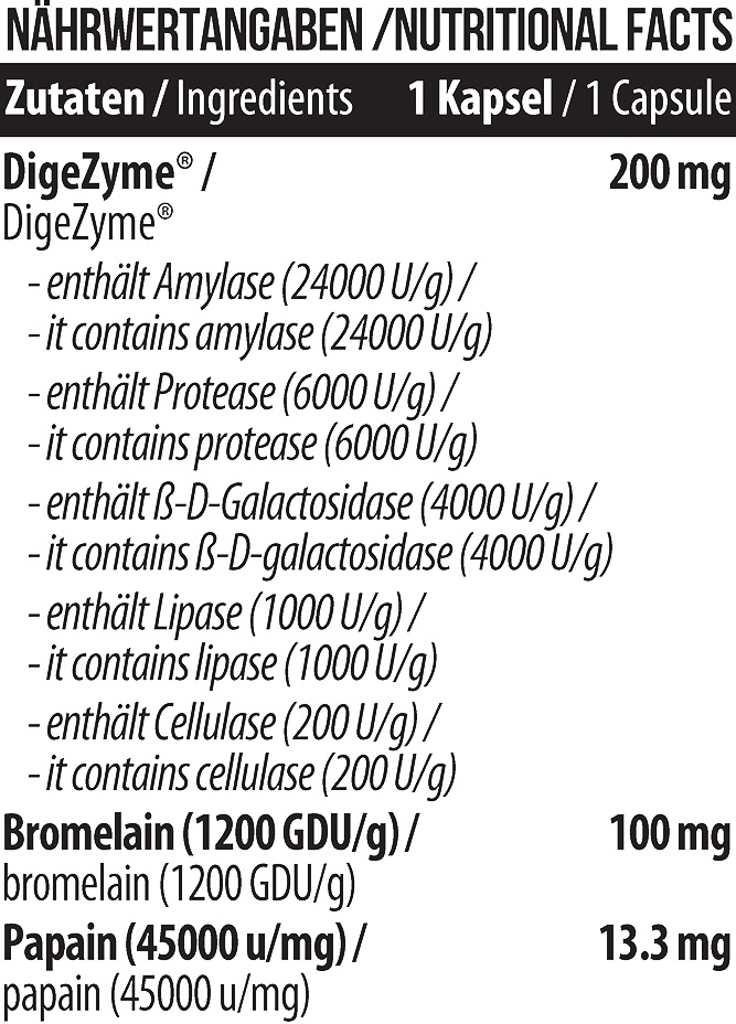 Enzymes DigeZyme MST - це комплекс ферментів, спеціально розроблений для поліпшення травлення та загального самопочуття. Містить ретельно підібрані ферменти, як-от амілаза, протеаза, ліпаза, лактаза, целюлаза, бромелайн і папаїн, які допомагають організму ефективно переробляти та засвоювати їжу.