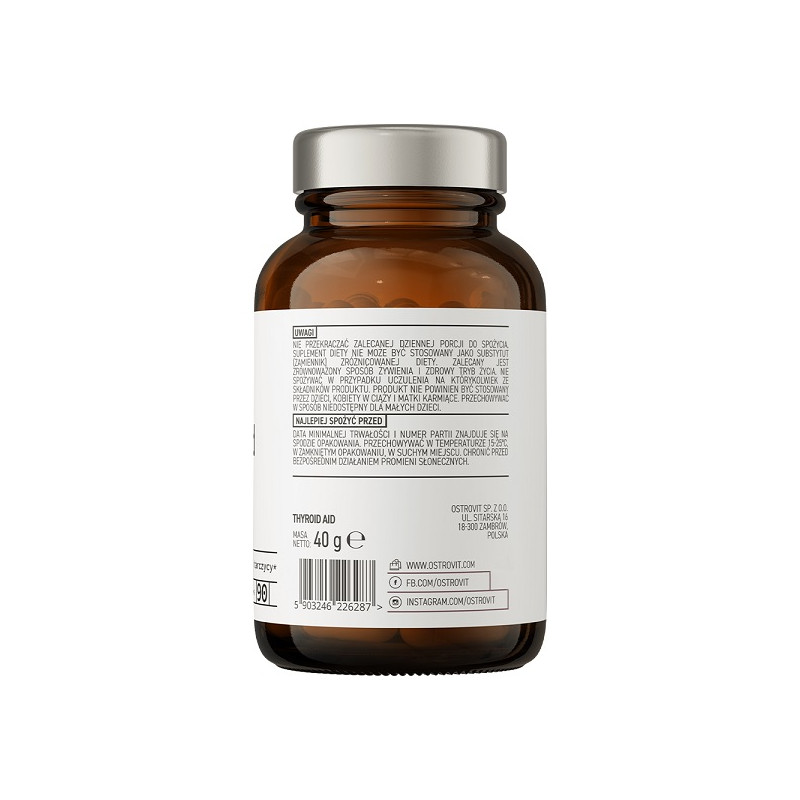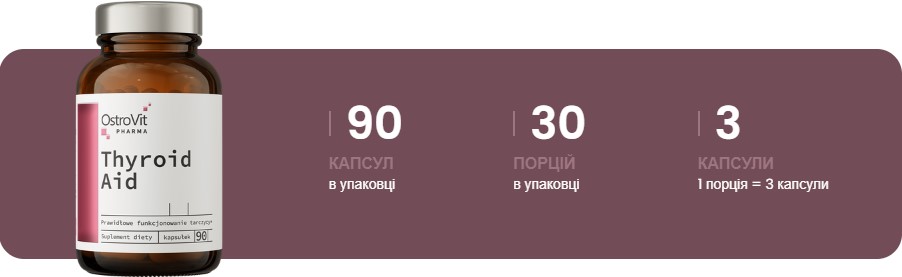 Pharma Thyroid Aid від OstroVit - це комплексний засіб для підтримки щитоподібної залози та загального здоров'я. Спеціально розроблений склад сприяє нормалізації метаболічних процесів, зміцнює нервову систему і допомагає підтримувати баланс гормонів. Продукт містить ключові компоненти, які забезпечують повноцінне функціонування щитоподібної залози та сприяють поліпшенню самопочуття.
