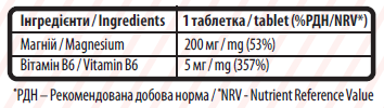 Вітамін B6 — необхідний елемент для нормального обміну речовин та функціонування нервової системи. Вітамін B6 також сприяє кращому засвоєнню магнію, забезпечуючи оптимальний ефект від прийому добавки.