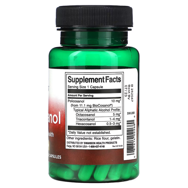 Характеристики    Policosanol 10мг Swanson (60 капсул)