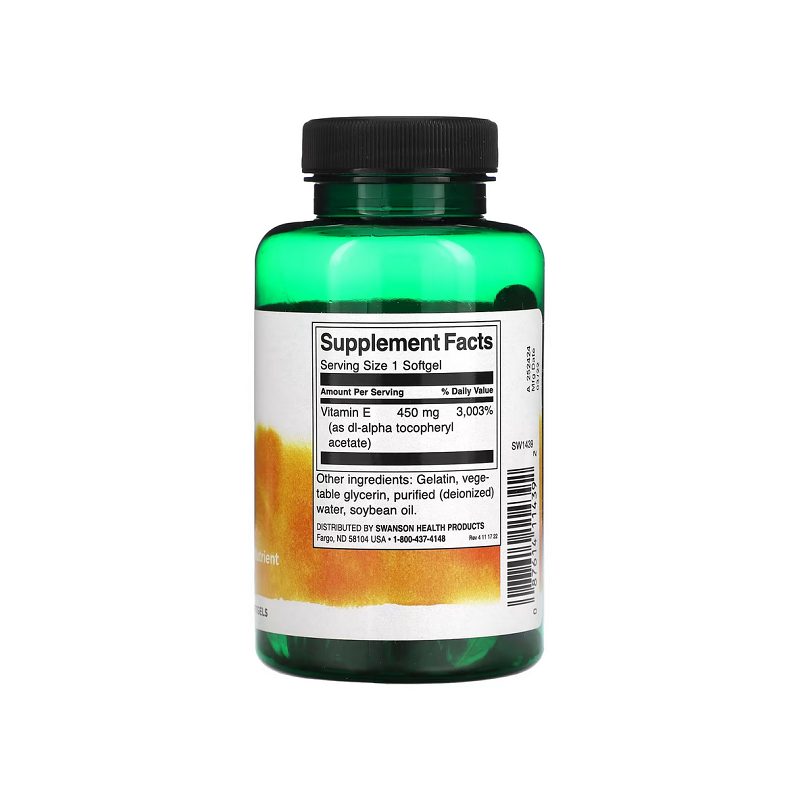 Vitamin E 1000 IU 450мг Swanson — потужна дієтична добавка, яка підтримує здоров'я шкіри, імунітету та серця. Натуральний антиоксидант, що захищає клітини від пошкоджень. Ідеальний вибір для щоденної підтримки організму.