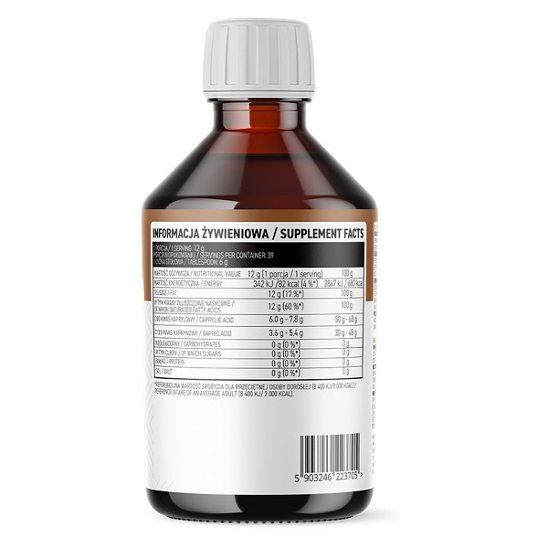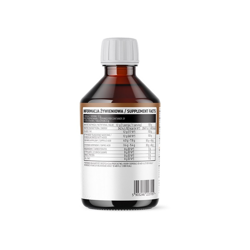 Високоякісний продукт, розроблений для підтримки активного способу життя, здоров'я та оптимальної енергії. Ця олія містить середньоланцюгові тригліцериди (MCT), що швидко засвоюються організмом, забезпечуючи швидкий приплив енергії без накопичення жиру. MCT олія ідеальна для людей, які дотримуються кето- або низьковуглеводної дієти, оскільки сприяє підвищенню кетонів, що робить її незамінною для фізично активних і тих, хто прагне контролювати вагу.