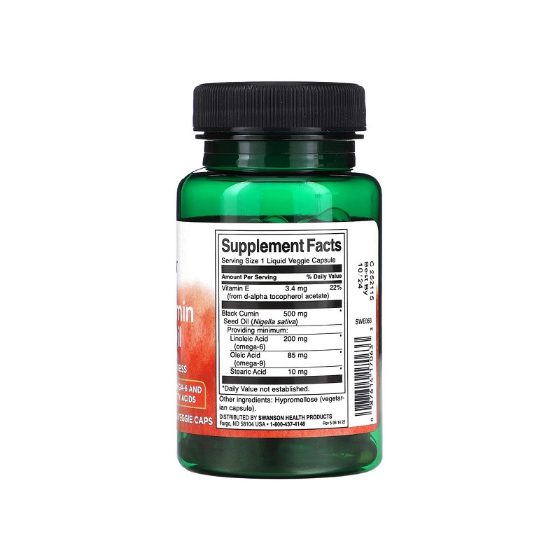 Black Cumin Seed Oil 500мг Swanson — це натуральна добавка для підтримки імунітету та загального здоров’я. Продукт містить холодно віджату олію насіння чорного кмину, що зберігає всі цінні властивості. Капсули зручні у вживанні та забезпечують необхідну кількість активних речовин для вашого щоденного догляду.