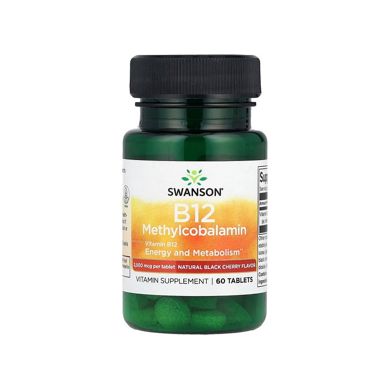 Vitamin B12 Methylcobalamin Black Cherry Flavored 2500мкг Swanson — збагачений смачним вишневим ароматом, цей вітамін B12 підходить для легкого щоденного прийому. Він сприяє зменшенню втоми, підтримуючи енергію та життєвий тонус. Ідеальний вибір для тих, хто прагне зберегти розумову ясність і здоров'я нервової системи.