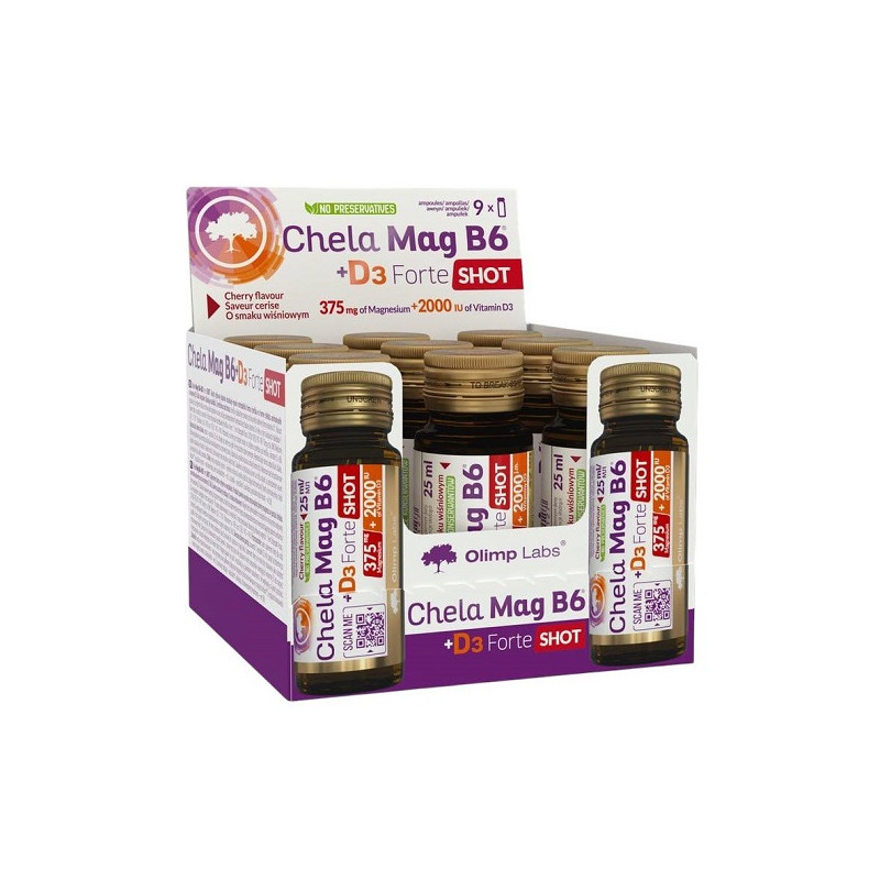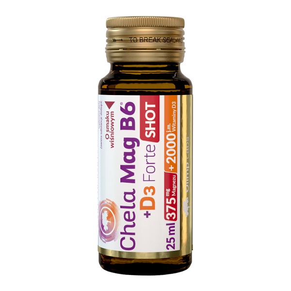 Chela Mag B6+D3 Forte Shot (вишня) скло Olimp — зручний шот для швидкої підтримки нервової системи та м’язів. Поєднує магній, вітамін B6 та D3 у рідкій формі для кращого засвоєння. Ідеальний для тих, хто шукає ефективний спосіб підтримки енергії та міцності кісток.