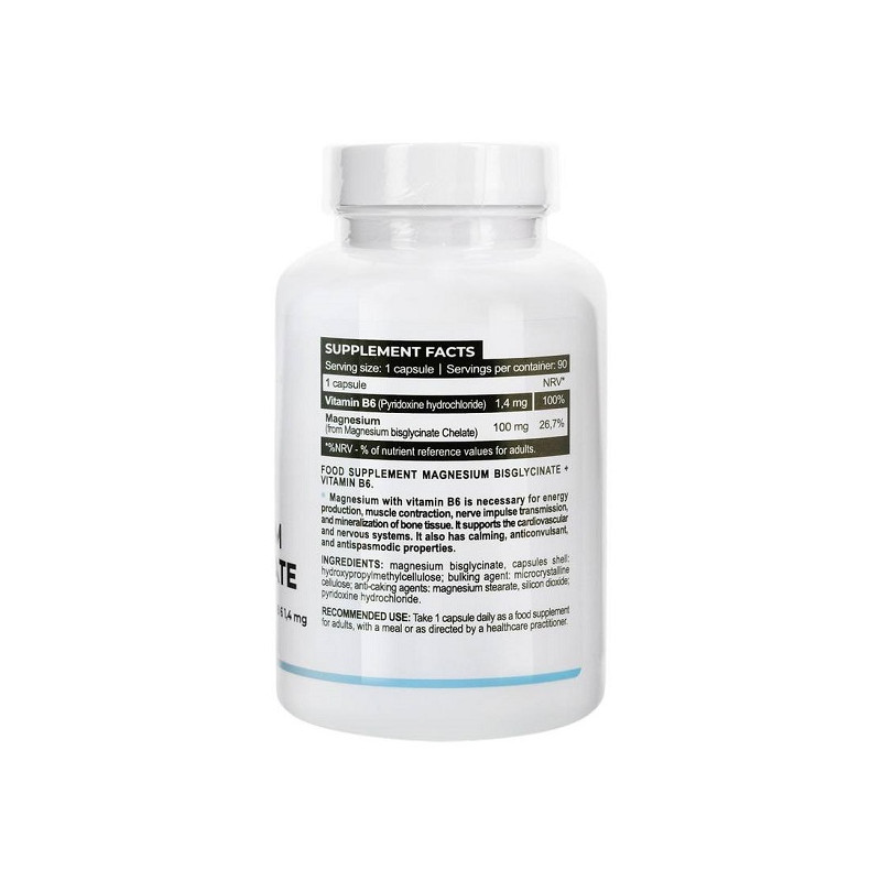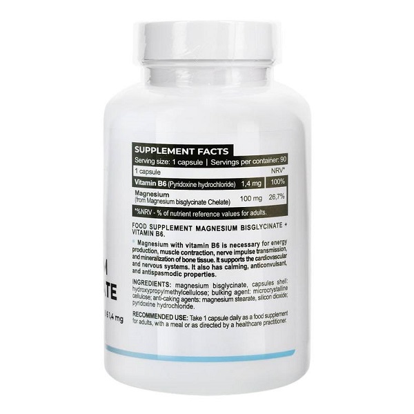 Інгредієнти: магнію бісгліцинат, оболонка капсул: гідроксипропілметилцелюлоза; наповнювач: мікрокристалічна целюлоза; антизлежувачі: магнію стеарат, кремнію діоксид; піридоксину гідрохлорид.