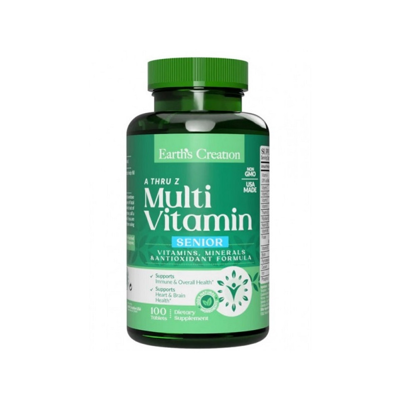 Комплекс Multivitamin (A thru Z) For Senior Earth’s Creation створений для підтримки здоров’я літніх людей завдяки збалансованому складу вітамінів і мінералів. Формула сприяє підвищенню енергії, зміцненню кісток та збереженню когнітивних функцій. Це ідеальний вибір для підтримки активного способу життя та загального тонусу організму.