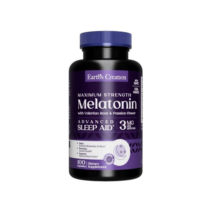 Melatonin 3мг + Valerian Root & Passion Flower Earth’s Creation допомагає нормалізувати сон і зменшити стрес. Поєднання мелатоніну, валеріани та пасифлори має заспокійливу дію. Продукт покращує якість сну і сприяє розслабленню перед сном. Ідеально підходить для тих, хто шукає природне рішення для боротьби з безсонням.