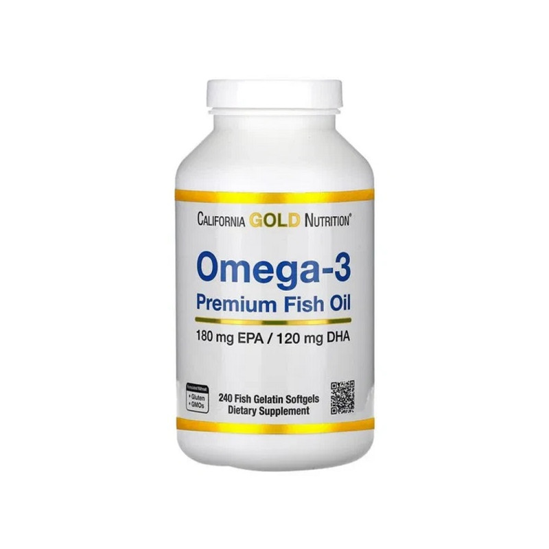Omega-3 Premium Fish Oil California Gold Nutrition – це натуральна підтримка вашого здоров'я завдяки високому вмісту EPA і DHA. Добавка сприяє зміцненню імунітету та підтримує зір. Завдяки очищеній формулі риб’ячого жиру, продукт не має рибного присмаку. Ідеальний вибір для тих, хто цінує якість і турбується про своє самопочуття.