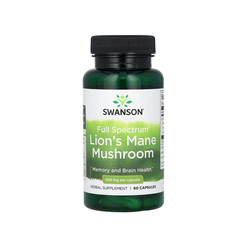 Full Spectrum Lion's Mane Mushroom 500мг від Swanson підтримує здоров'я мозку та нервової системи. Ця добавка сприяє покращенню пам'яті, концентрації та зниженню стресу. Лев'яча грива стимулює відновлення нервових клітин, що позитивно впливає на когнітивні функції. Ідеальний вибір для тих, хто шукає природну підтримку для мозкової активності та емоційного балансу.
