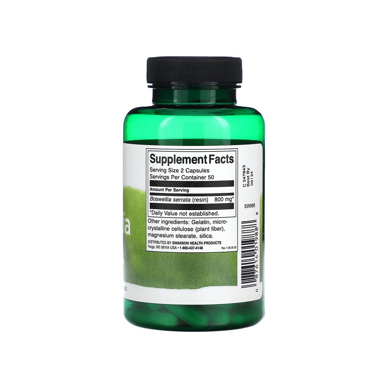 Boswellia 400мг Swanson – натуральна добавка для підтримки здоров'я суглобів і зменшення запалення. Вона покращує рухливість суглобів і знижує дискомфорт при фізичних навантаженнях. Завдяки потужному екстракту босвелії, продукт сприяє нормалізації кровообігу в тканинах. Ідеальний вибір для тих, хто шукає природний спосіб полегшення болю та запалення.