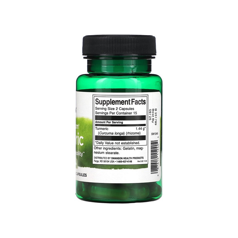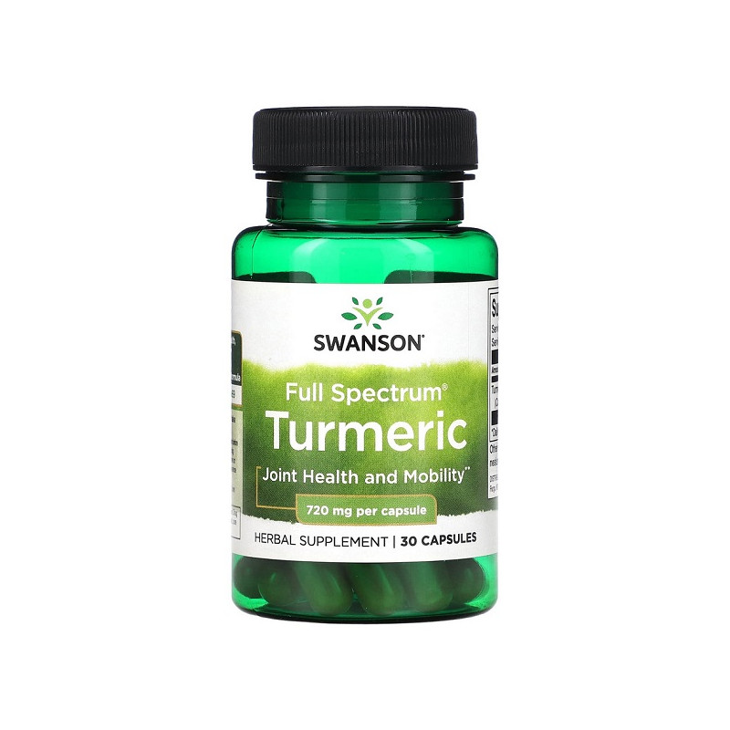 Turmeric Full Spectrum 720мг Swanson допомагає зменшити запалення та підтримує здоров'я суглобів. Високий вміст активних компонентів забезпечує потужний антиоксидантний ефект. Куркума сприяє поліпшенню травлення та зміцненню імунітету. Ідеальний вибір для підтримки загального здоров'я та боротьби з запальними процесами.