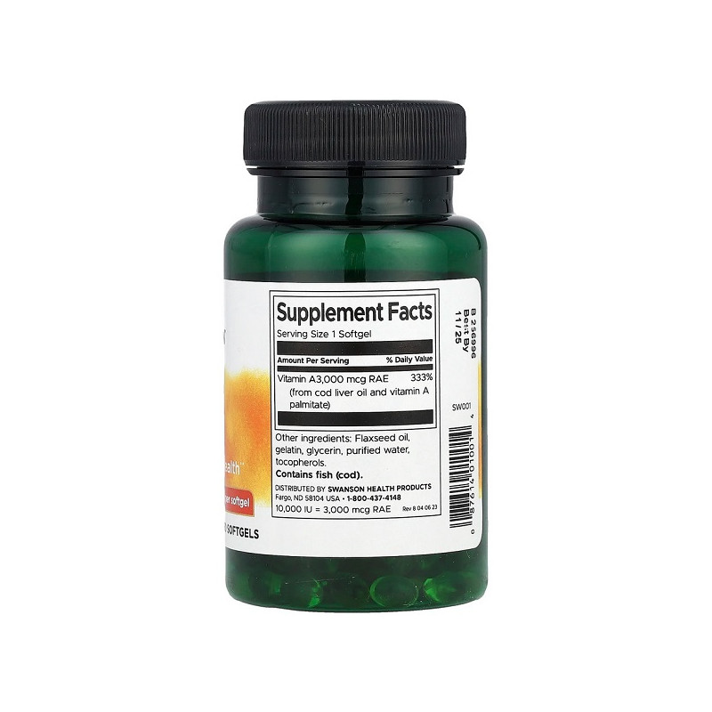 Vitamin A 10000 IU Swanson забезпечує важливу підтримку здоров’я очей та шкіри. Продукт сприяє нормальному функціонуванню імунної системи, допомагаючи організму протистояти захворюванням. Вітамін А також необхідний для підтримки здоров’я слизових оболонок і кісткової тканини. Зручний формат капсул робить його простим у використанні щодня.