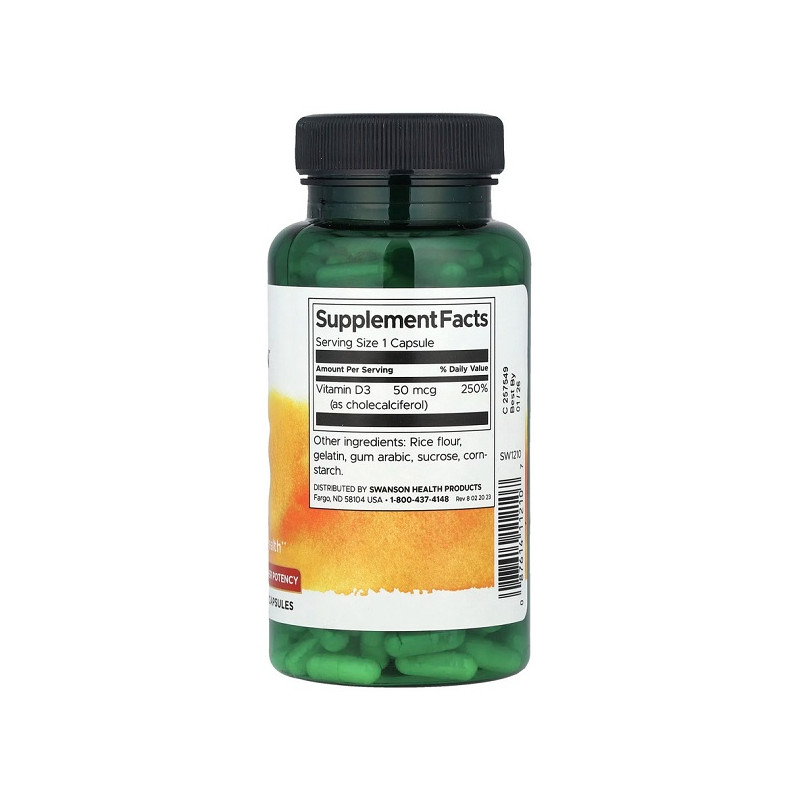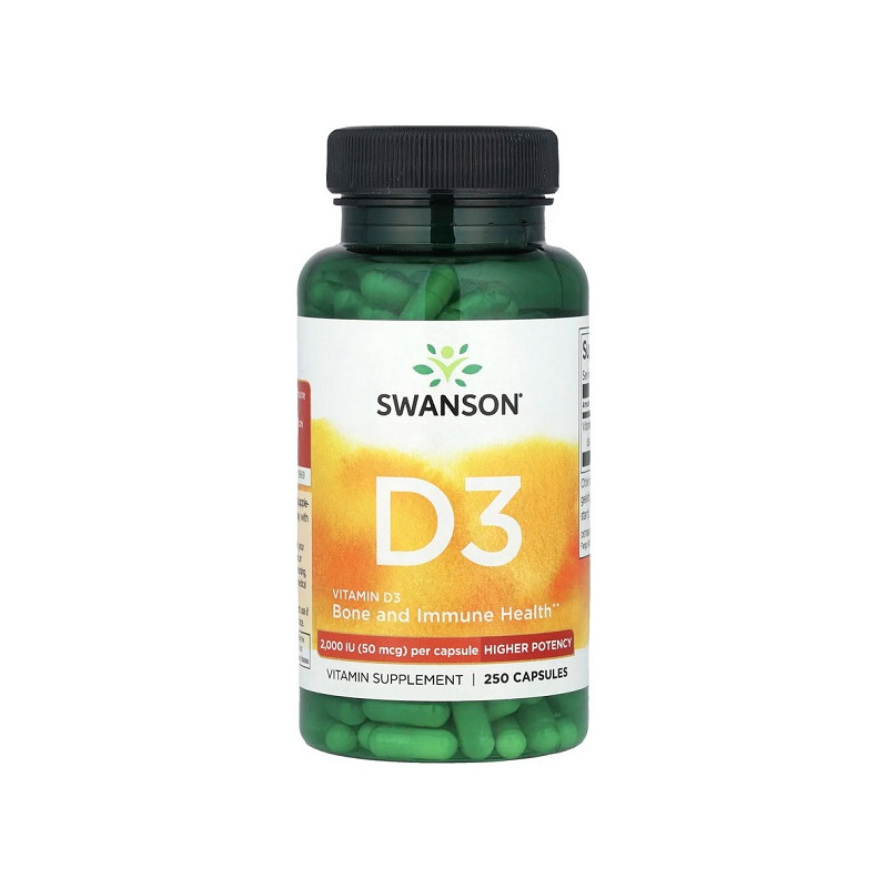 Vitamin D3 2000 IU Swanson підтримує здоров'я кісток, зубів і імунітету. Ця добавка допомагає організму ефективно засвоювати кальцій для зміцнення кісткової тканини. Вітамін D3 також сприяє нормалізації м’язової функції та зменшує втому. Ідеальний варіант для підтримки загального здоров’я та енергійності протягом дня.