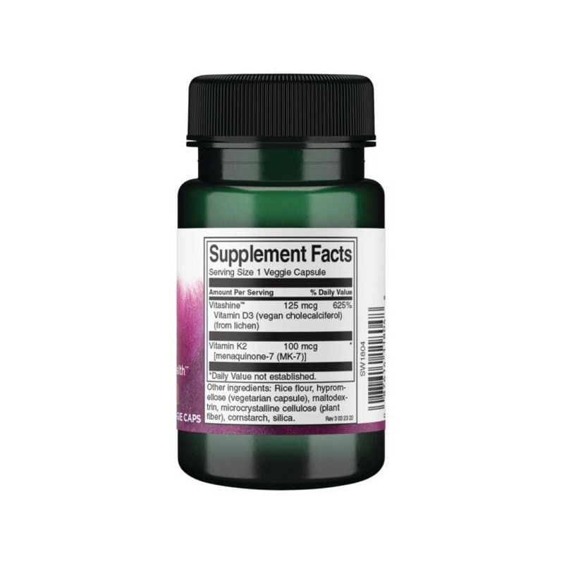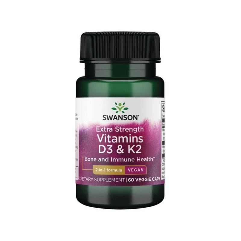 Комплекс Vitamins D3 & K2 від Swanson забезпечує синергічну підтримку здоров'я кісток, серцево-судинної системи та імунітету. Поєднання вітамінів D3 та K2 допомагає оптимально засвоювати кальцій і направляти його до кісткової тканини, зменшуючи ризик кальцифікації судин. Ця формула забезпечує високу ефективність завдяки 5,000 IU вітаміну D3 та 100 мкг вітаміну K2 у вигляді менахінону-7 (MK-7), який має тривалий період дії в організмі. Вегетаріанські капсули роблять продукт доступним для широкого кола користувачів.