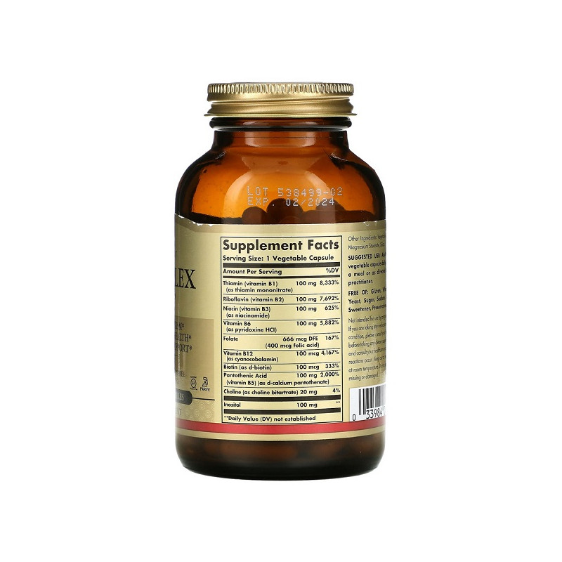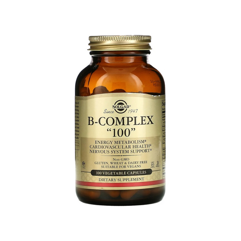B-Complex 100 від Solgar містить вітаміни групи B, які підтримують енергетичний обмін та здоров'я нервової системи. Продукт допомагає зменшити стрес і поліпшити концентрацію. Він також сприяє зміцненню імунітету та покращує стан шкіри й волосся. Ідеальний для людей з активним способом життя або тих, хто потребує підтримки нервової системи.