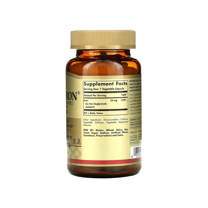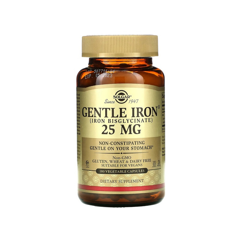 Gentle Iron 25мг Solgar – це м’яка форма заліза, яка не викликає дискомфорту в шлунку. Вона допомагає підтримувати нормальний рівень кисню в крові та запобігає анемії. Завдяки високій засвоюваності, продукт ідеально підходить для людей із чутливою травною системою. Капсули легко ковтати, а їхній склад не містить штучних добавок.