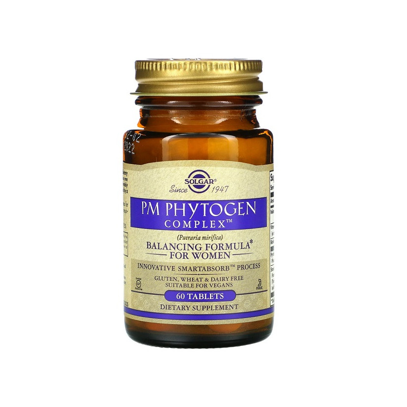 PM PhytoGen Complex Solgar підтримує здоров'я жінок, знижуючи рівень стресу та сприяючи гарному сну. Завдяки натуральним екстрактам рослин, продукт нормалізує гормональний фон і зменшує симптоми передменструального синдрому. Він покращує емоційний стан і допомагає адаптуватися до стресових ситуацій. Це ідеальна добавка для тих, хто шукає підтримку у важливі моменти свого життя.