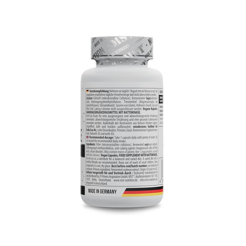 Натуральний ферментний комплекс, отриманий з традиційного японського продукту натто, який сприяє підтримці здоров'я серцево-судинної системи. Наттокіназа допомагає підтримувати нормальну в'язкість крові, сприяє розщепленню фібрину та покращує кровообіг, що зменшує ризик утворення тромбів. Завдяки ферментативній активності цей продукт може позитивно впливати на артеріальний тиск, сприяти зменшенню запальних процесів і покращувати загальне самопочуття. Nattokinase MST рекомендується людям, які прагнуть підтримати здоров'я серця, судин і нормальну циркуляцію крові.