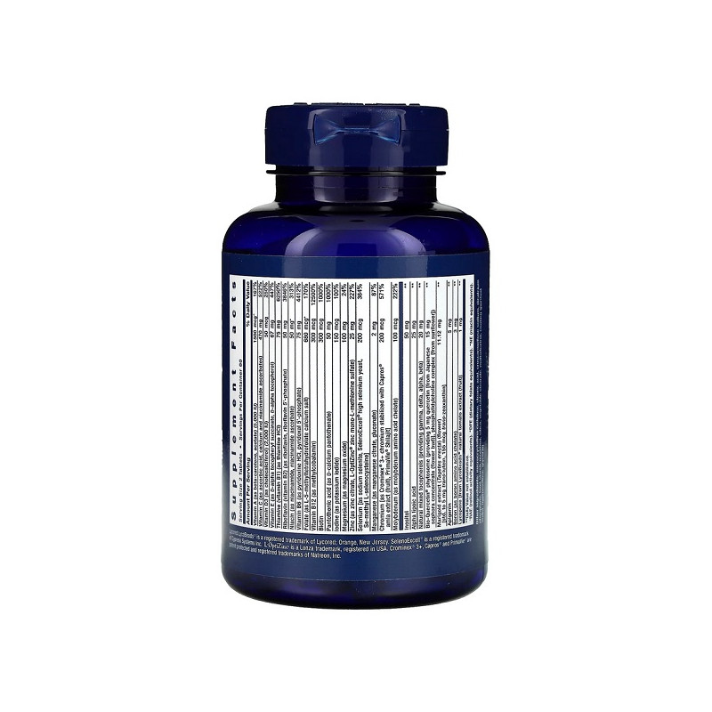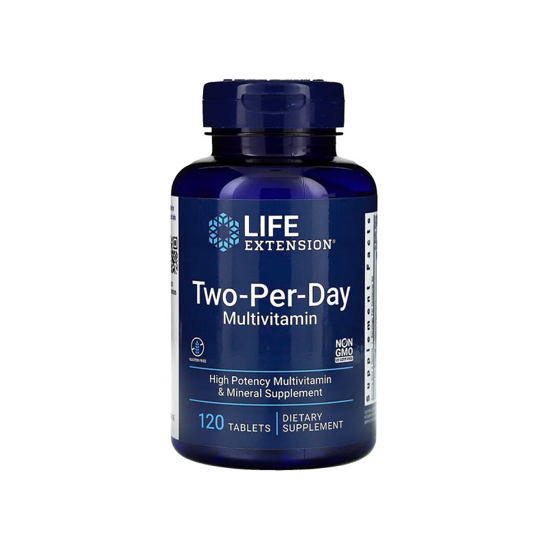 Two-Per-Day Multivitamin Life Extension – це комплекс вітамінів і мінералів для підтримки загального здоров'я. Продукт містить важливі елементи для зміцнення імунної системи та серцево-судинної функції. Він також допомагає боротися з вільними радикалами завдяки антиоксидантам. Легкість у прийомі – всього дві таблетки на день. Продукт не містить ГМО і глютену, що робить його безпечним для людей з особливими вимогами.