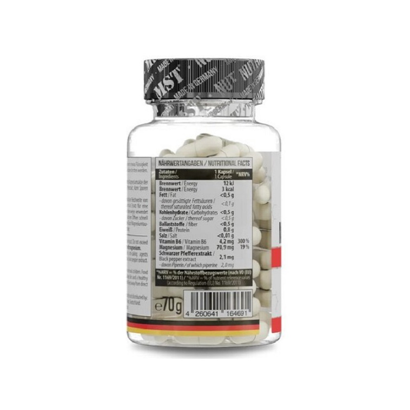 Magnesium Taurate + Vitamin B6 MST підтримує здоров'я серця та нервової системи, зменшуючи рівень стресу і покращуючи настрій. Цей комплекс допомагає зняти м'язові спазми та покращує якість сну. Вітамін B6 сприяє енергетичному обміну, покращує концентрацію і підтримує функцію імунної системи. Магній у складі додає сили і підвищує стійкість до фізичних навантажень. Ідеальний вибір для тих, хто шукає підтримку під час активного життя.