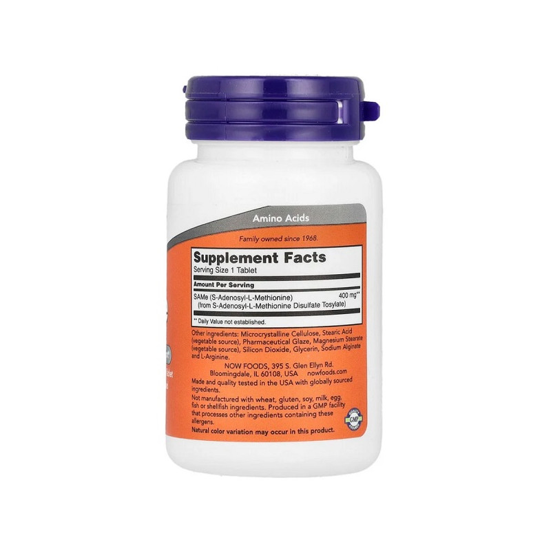 SAM-E 400мг Now Foods допомагає підтримувати здоров'я суглобів і покращує настрій. Це ефективна добавка для підтримки нормальної функції печінки та метаболічних процесів. Завдяки своїй антиоксидантній дії, SAM-E може допомогти знижувати рівень запалення. Продукт підтримує здоров'я нервової системи, знижуючи стрес та покращуючи загальний стан. Він не містить ГМО, глютену або молочних продуктів, що робить його доступним для людей з різними харчовими вимогами.