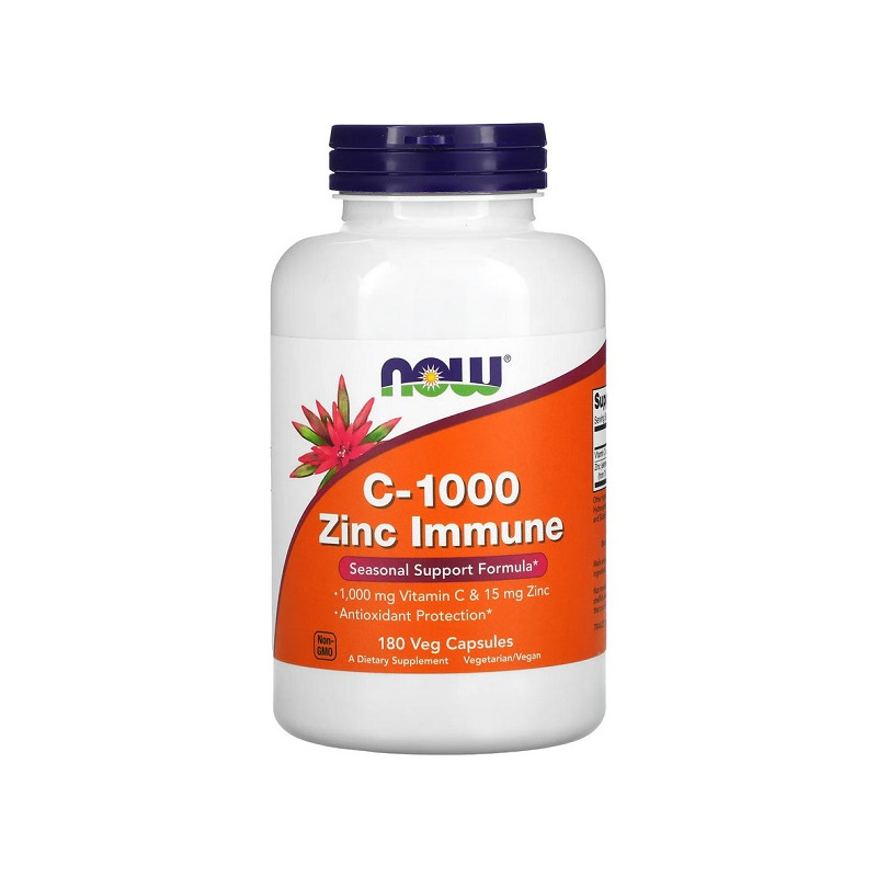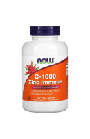 C-1000 Zinc Immune від Now Foods підтримує здоров'я імунної системи завдяки вітаміну С і цинку. Вітамін С покращує захист від інфекцій і сприяє відновленню тканин. Цинк відіграє важливу роль у загоєнні ран і підтримці шкіри. Продукт допомагає організму боротися з вільними радикалами і сприяє швидкому відновленню після застуди. Ідеальний вибір для вегетаріанців, оскільки має рослинну капсулу.