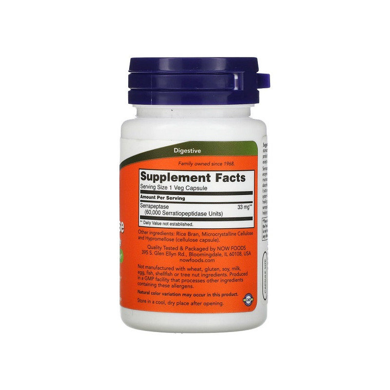 Serrapeptase 60000 SU Now Foods – природний фермент, який активно знижує запалення та сприяє очищенню організму від токсинів. Підтримує здоров’я суглобів, допомагаючи зменшити біль та набряки. Він має позитивний вплив на дихальну систему та покращує кровообіг. Ідеальний для людей, які шукають природні методи зняття запальних процесів. Формула продукту підходить для веганів і не містить штучних добавок.
