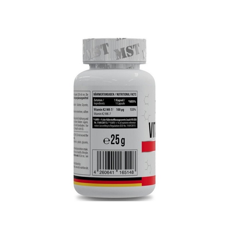 Vitamin K2 MK-7 MST – це високоякісний вітамін K2 у формі менахінону-7, який забезпечує тривалий ефект у підтримці здоров’я кісток. Він сприяє правильному розподілу кальцію в організмі, зменшуючи ризик його відкладення в судинах. Формула продукту розроблена для максимальної біодоступності та швидкого засвоєння. Капсули мають зручний розмір для легкого прийому. Регулярне вживання сприяє міцності кісток і нормальній роботі серцево-судинної системи.