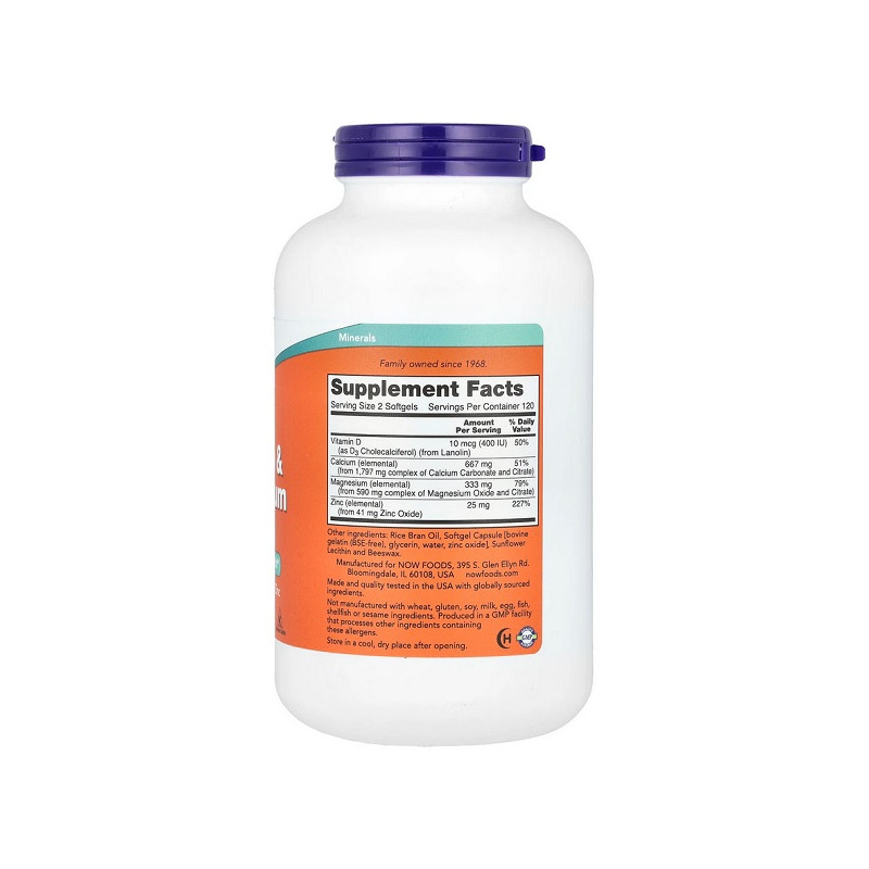 Calcium Magnesium + Vit D Now Foods — комплекс для здоров’я кісток і зубів, що забезпечує оптимальне засвоєння кальцію завдяки вітаміну D. Магній у складі продукту сприяє зменшенню м’язових спазмів і підтримує нормальне функціонування м’язів. Вітамін D допомагає зберегти міцність кісток і зубів, а також підтримує імунітет. Продукт також ефективно знижує стрес і покращує якість сну. Це ідеальне рішення для тих, хто хоче підтримати своє фізичне та психічне здоров’я.