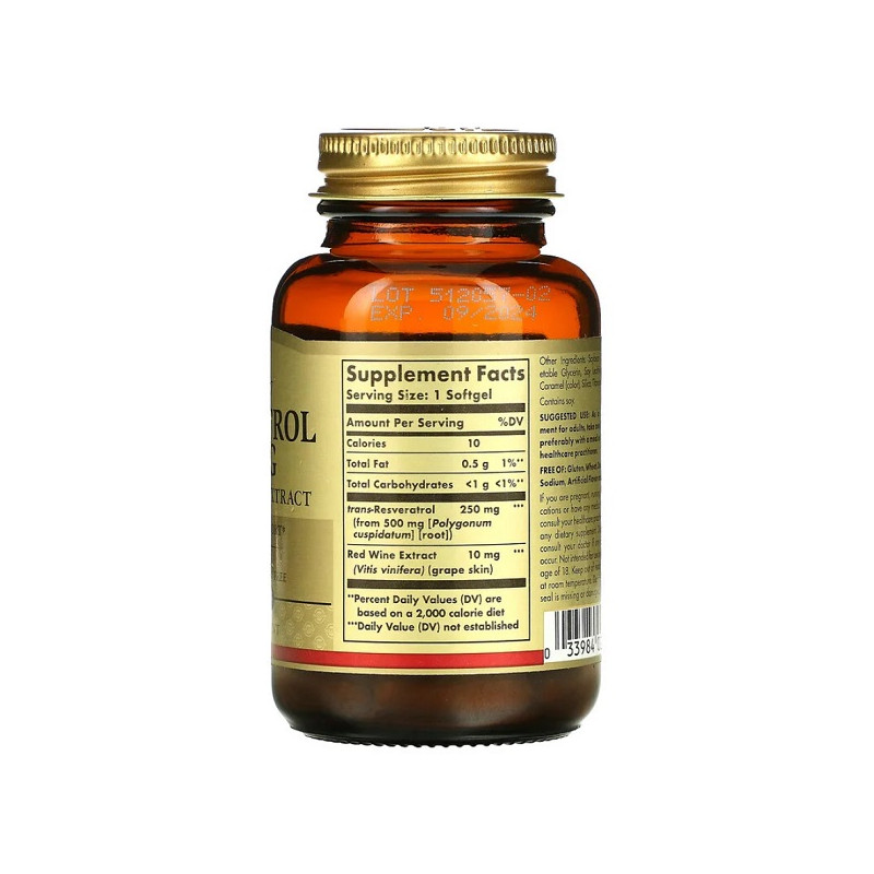 Resveratrol 250мг Solgar — потужний антиоксидант, який допомагає захищати організм від окисного стресу. Він підтримує здоров'я серця, покращує кровообіг і знижує запалення. Продукт має омолоджувальний ефект, сприяє покращенню стану шкіри та підвищує її еластичність. Ресвератрол також підтримує когнітивні функції, покращує пам'ять і концентрацію. Регулярне використання цієї добавки сприяє загальному зміцненню імунної системи та енергії.