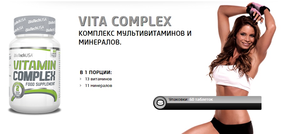 Заповнити баланс вітамінів і мінералів в організмі найпростіше за допомогою регулярного прийому комплексу VitaminComplex від BioTechUSA. Добавка виготовлена з високоякісної сировини і містить мікс 13 вітамінів і 10 мінералів, і відмінно підходить як жінкам, там і чоловікам.
