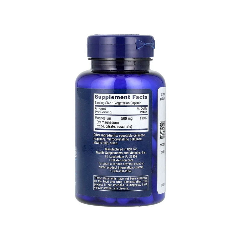 Magnesium 500мг Life Extension – це надійний вибір для тих, хто прагне підтримати здоров'я нервової системи, м'язів та серця.