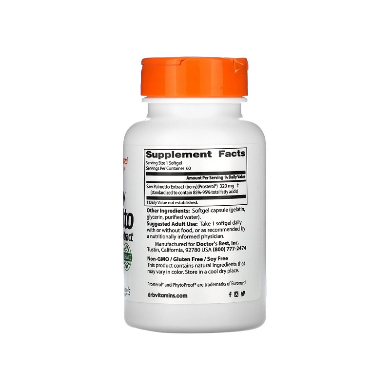 Saw Palmetto with Prosterol 320мг Doctor’s Best – це ефективна добавка для підтримки здоров'я простати, яка допомагає зберегти гормональний баланс та поліпшити функціонування сечостатевої системи.