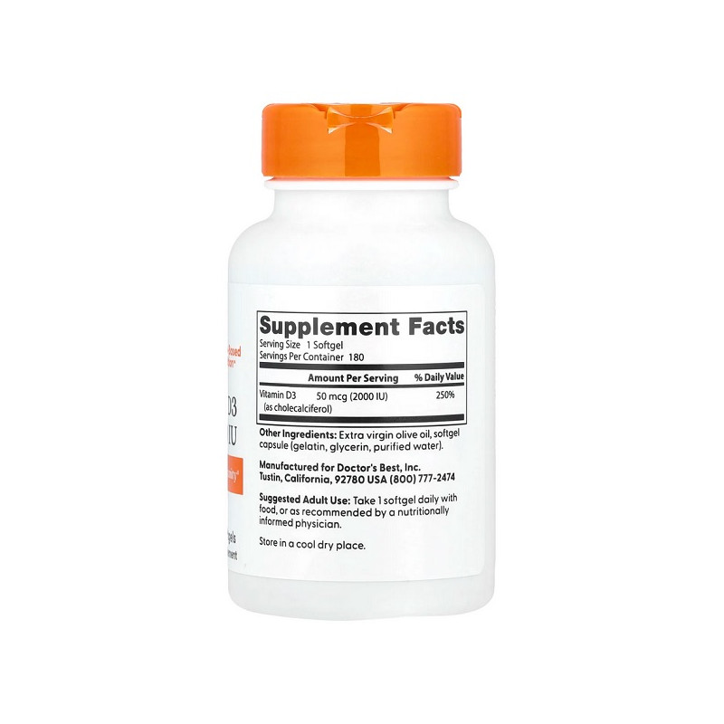 Vitamin D3 50мкг (2000 IU) Doctor's Best — це чудовий вибір для підтримки здоров’я, зокрема в зимовий період, коли доступ до сонця обмежений.