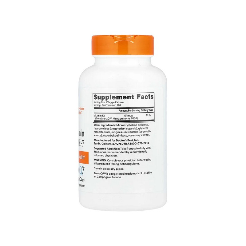 Vitamin K2 MK-7 45мкг Doctor's Best — це надійна формула для щоденної підтримки здоров’я кісток, зубів і судин, створена з турботою про якість і ефективність.