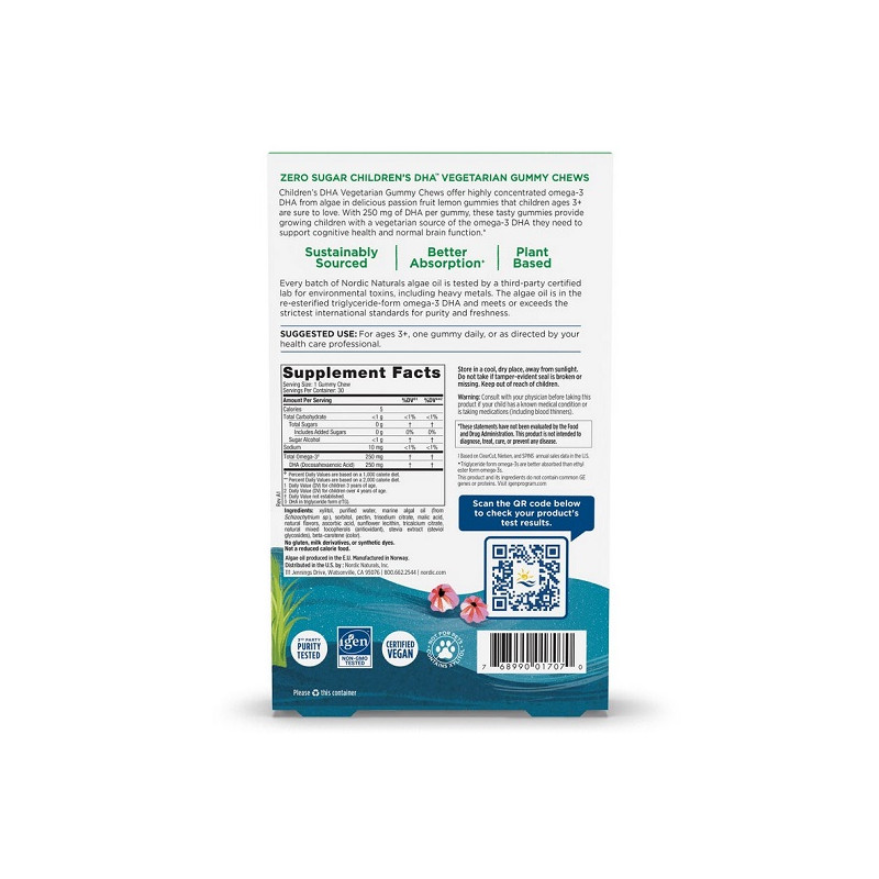 Children's DHA Zero Sugar від Nordic Naturals — це безцукрові жувальні таблетки для підтримки здоров'я мозку та зору у дітей. Легко засвоювані і смачні, вони стануть чудовим доповненням до щоденного раціону. Омега-3 сприяє розвитку когнітивних здібностей і поліпшенню концентрації. Продукт не містить штучних добавок і барвників, що робить його безпечним для дітей. Children's DHA Zero Sugar — це зручний і смачний спосіб підтримати здоров'я малюка на кожному етапі розвитку.