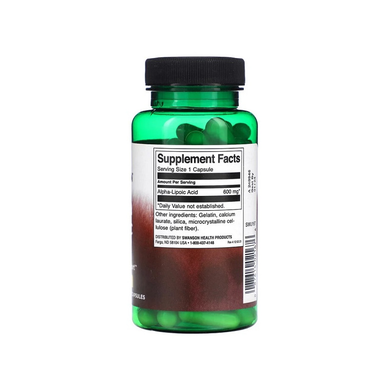 Alpha Lipoic Acid 600мг Swanson – ефективний антиоксидант, що допомагає захищати клітини від окислювального стресу. Продукт сприяє підтримці нормального рівня цукру в крові та покращенню енергетичного обміну. Альфа-ліпоєва кислота також покращує стан шкіри, зменшуючи видимі ознаки старіння. Допомагає зміцнити серцево-судинну систему та підтримує нервову діяльність. Ідеальний вибір для тих, хто прагне поліпшити загальний стан здоров'я та боротися з окислювальними процесами.