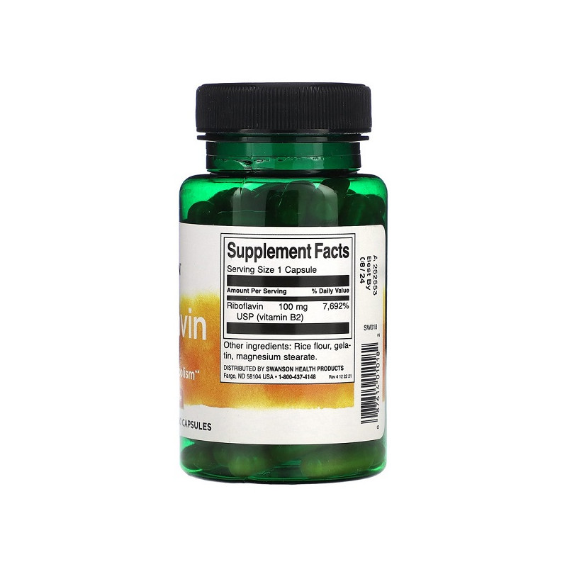 Vitamin B2 Riboflavin 100мг Swanson підтримує організм на клітинному рівні, сприяючи оптимальному функціонуванню ферментних систем. Цей вітамін важливий для перетворення поживних речовин у доступну енергію. Регулярне вживання допомагає покращити самопочуття та підтримати життєвий тонус. Добавка особливо корисна людям зі збідненим раціоном або вегетаріанцям. Зручна форма капсул дозволяє легко контролювати добову норму рибофлавіну.