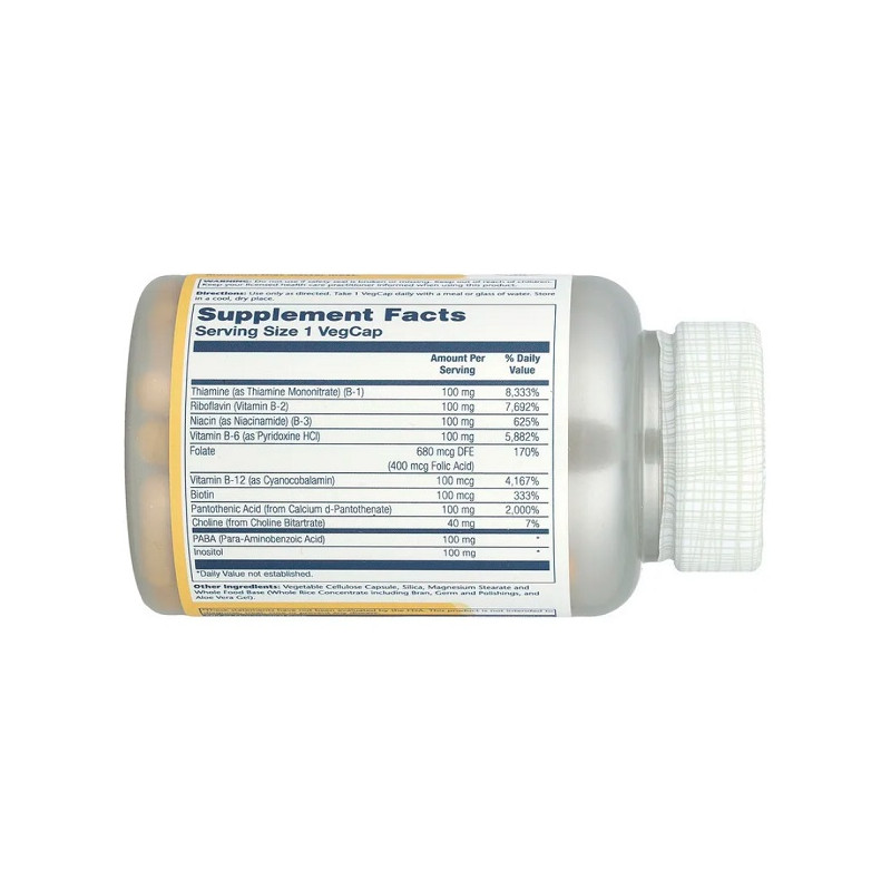 Vitamin B-Complex 100мг Solaray — це формула для щоденної підтримки активного способу життя. Продукт особливо корисний для людей, які часто перебувають у стресових ситуаціях або ведуть насичений графік. Вітаміни сприяють покращенню ментальної витривалості та загального тонусу організму. Ця добавка ідеально підходить для сезонного прийому навесні та восени. Solaray гарантує чистоту складу та високу якість кожної капсули.