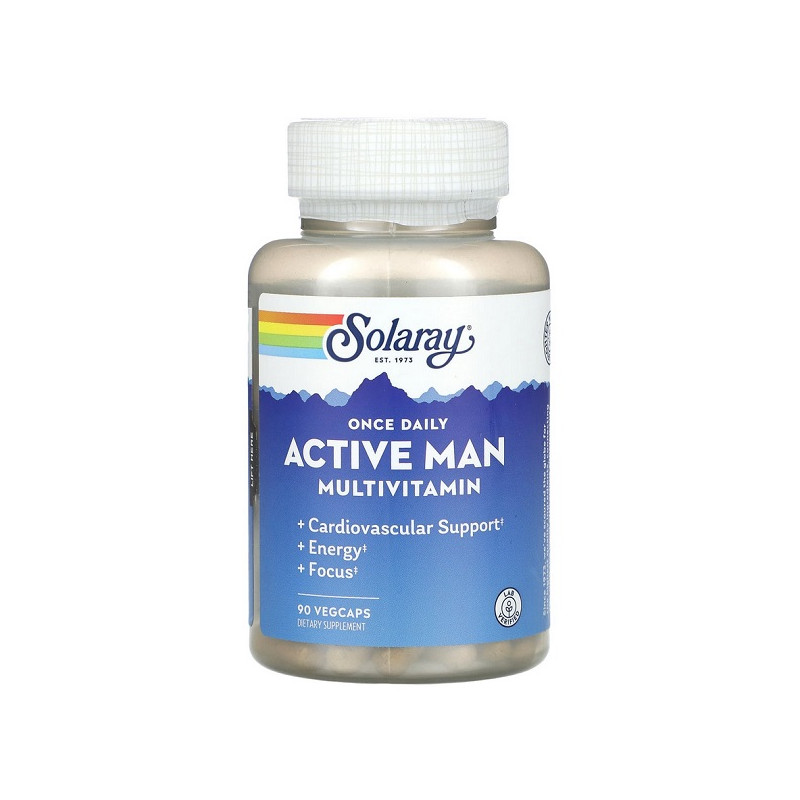 Комплексна формула Once Daily Active Man від Solaray розроблена спеціально для підтримки здоров’я та життєвого тонусу активних чоловіків. Кожна капсула містить збалансовану добову дозу вітамінів, мінералів, амінокислот, антиоксидантів і рослинних екстрактів, які сприяють зміцненню імунітету, підвищенню енергії, нормалізації гормонального балансу та підтримці серцево-судинної системи. До складу входить ферментна суміш для кращого засвоєння поживних речовин, а також компоненти, що сприяють зниженню стресу та загальному самопочуттю. Добавка виготовлена у вигляді вегетаріанських капсул без штучних барвників, консервантів і продуктів тваринного походження. Ідеально підходить для щоденного використання в умовах активного способу життя.