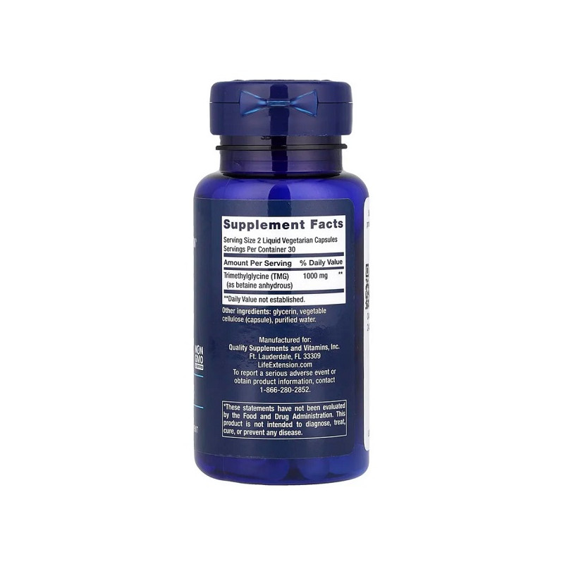 TMG 500мг Life Extension – це потужна добавка для підтримки здоров'я серця, печінки та клітинного метаболізму, яка допомагає зберігати активність та енергію.