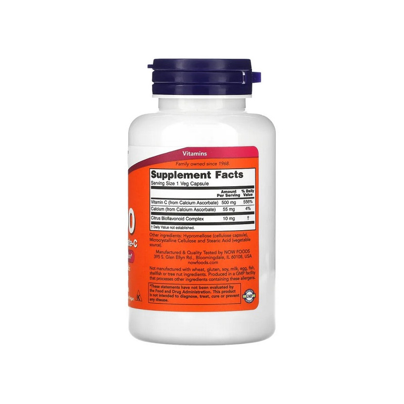 Vitamin C-500 Calcium Ascorbate-C Now Foods – це м’яка формула для щоденної антиоксидантної підтримки, яка не навантажує шлунок і сприяє загальному зміцненню організму.