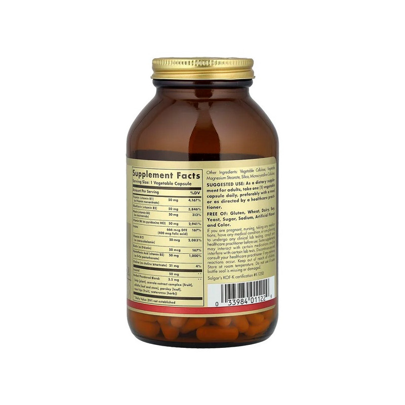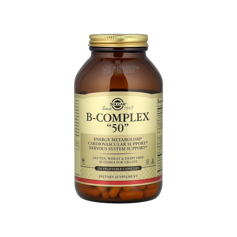 Solgar B-Complex with Vitamin C Stress Formula — це надійна підтримка вашого організму в періоди підвищеного стресу та навантажень, допомагаючи зберегти енергію, ясність розуму та міцний імунітет.