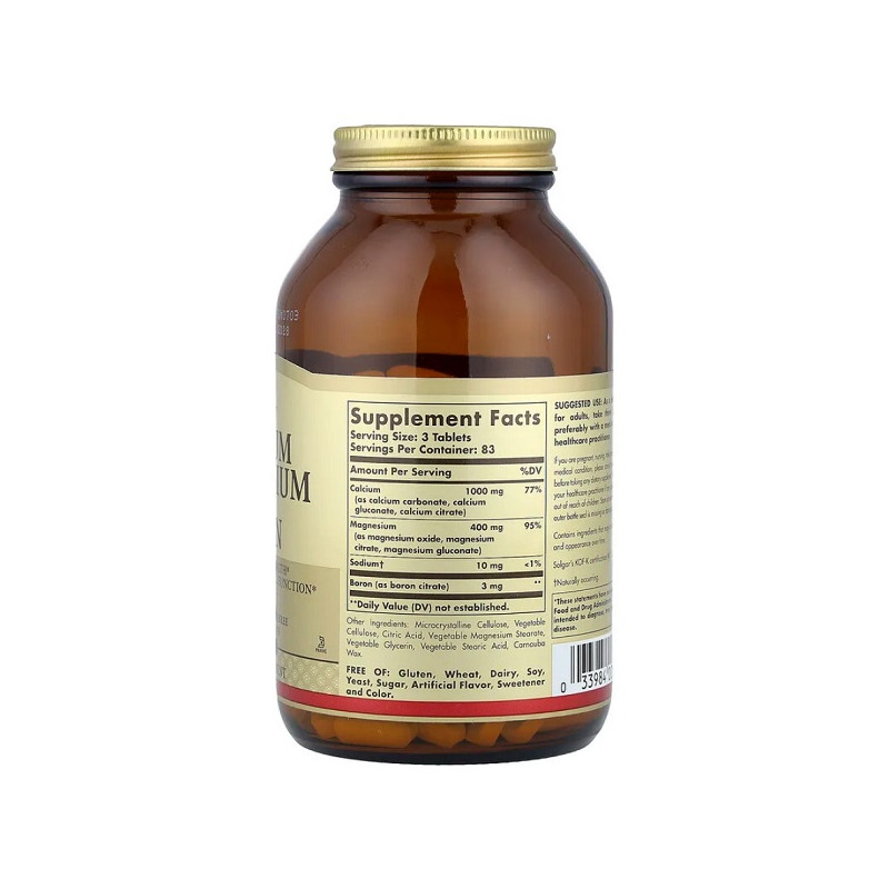Calcium Magnesium Plus Boron Solgar — це надійна щоденна підтримка здоров’я кісток, м’язів та нервової системи у зручній формі для тривалого застосування.