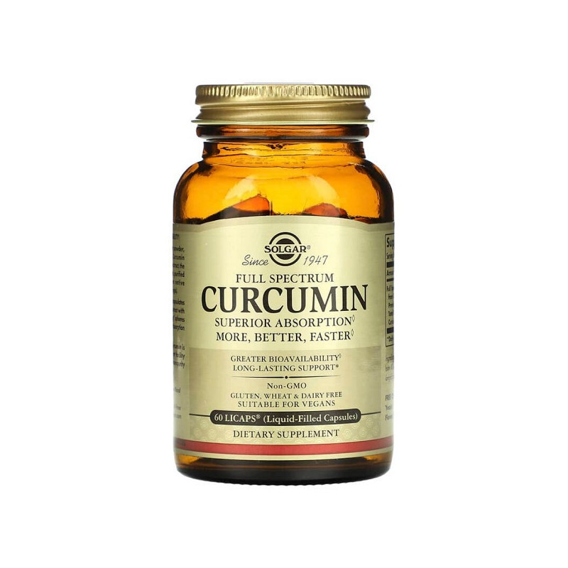 Високоякісна харчова добавка на основі куркуміну, що забезпечує потужну антиоксидантну та протизапальну підтримку організму. Curcumin Full Spectrum від Solgar містить запатентовану форму куркуміну, яка забезпечує високу біодоступність і засвоюваність, допомагаючи боротися із запальними процесами, покращувати стан суглобів і підтримувати загальне самопочуття. Цей продукт особливо рекомендований людям з хронічними запаленнями, болем у суглобах або тими, хто прагне захистити клітини від оксидативного стресу. Куркумін також позитивно впливає на роботу мозку, серцево-судинної системи та підтримує нормальний обмін речовин. Продукт не містить глютену, молочних компонентів, ГМО та штучних домішок.