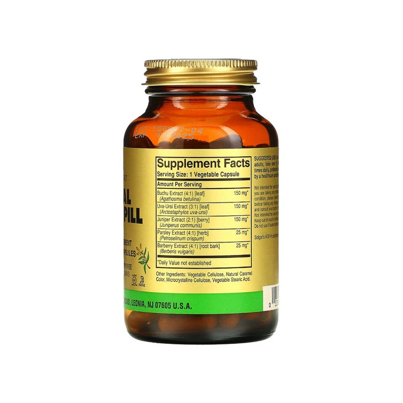 Herbal Water Pill Solgar — це фітокомплекс для м’якого виведення зайвої рідини з організму без шкоди для здоров’я. Його дія ґрунтується на поєднанні п’яти лікувальних рослин, які підтримують сечовидільну систему та допомагають зменшити набряки. Продукт корисний при відчутті тяжкості, сезонних набряках або під час програм очищення організму. Не містить кофеїну чи сечогінних хімічних речовин. Завдяки натуральному складу, добавка не викликає звикання і підходить для тривалого застосування. Вона м’яко діє, не виснажуючи організм і не порушуючи рівень електролітів. Ідеально підходить людям, які дбають про здоров’я нирок і природну легкість у тілі.